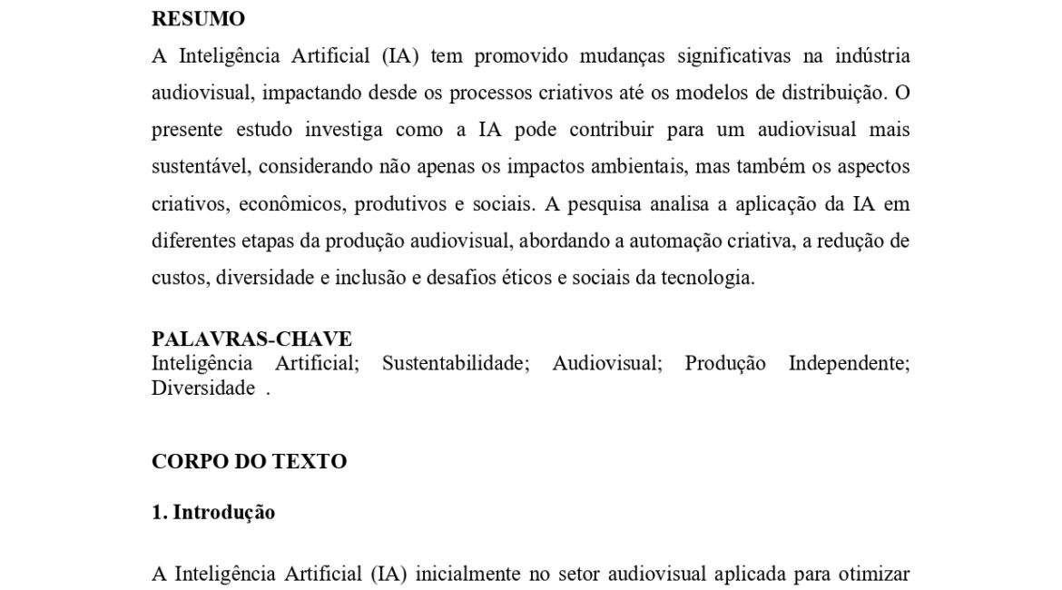 Intercom 2025 Produção transmídia de temática LGBTQIA+ - novas plataformas para novos conteúdos A Inteligência Artificial (IA) tem promovido mudanças significativas na indústria audiovisual, impactando desde os processos criativos até os modelos de distribuição. O presente estudo investiga como a IA pode contribuir para um audiovisual mais sustentável, considerando não...